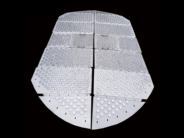 塔盤是指板式塔中提供氣液傳質(zhì)和傳熱場所的主要部件。使兩種流體密切進行兩相之間熱量和質(zhì)量交換,以達到分離液體混合物或氣體混合物組分的目的。主要由氣液接觸元件(如浮閥、泡罩、篩孔等)、受液盤、溢流堰、降液管(或降液板)、塔盤支持件和緊固件等組成。當塔徑較小時,每層塔盤為一整塊,稱整塊式塔盤。 |